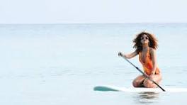 Rihanna showcases her curves in a flame-coloured swimsuit as she paddle boards in Barbados After baring almost all in skimpy jeweled lingerie for a carnival earlier this week, Rihanna was surprisingly a little more covered up when she hit the ...