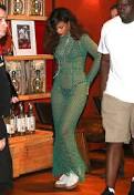 Rihanna flashes her boobs and bum in see through mesh outfit Rihanna is a very resourceful dresser. Not only is this frock-shaped mesh a fine way to show off her figure, it also doubles up nicely as a fishing net.