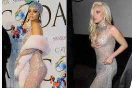 Did Rihanna inspire Gaga's see-through dress? Rihanna boldly decided against pasties, and accessorized a la Marilyn Monroe with a fur wrap, matching gloves and mesh headpiece. Gaga went with ...