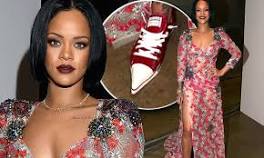Rihanna stuns in plunging floral gown... but reveals intriguing choice of shoes as she performs ... Rihanna revealed an interesting choice of footwear as she posed backstage at the 2016 MusiCares Person of the Year honoring Lionel Richie on ...
