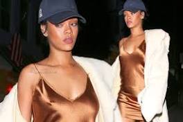 Rihanna gets VERY long-legged as she couples beautiful gold dress & fur coat with a baseball cap Rihanna is understood for swapping from bundled up informal to nearly-naked glamour – still she combined a little bit of the 2 on a current night out.