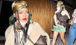 Rihanna highlights her lean legs in a flowy green mini-dress and a brown jacket as she dines out ... And Rihanna enjoyed a brief break from her busy career as she dined out at The Nice Guy in West Hollywood on Saturday evening. Read More ...